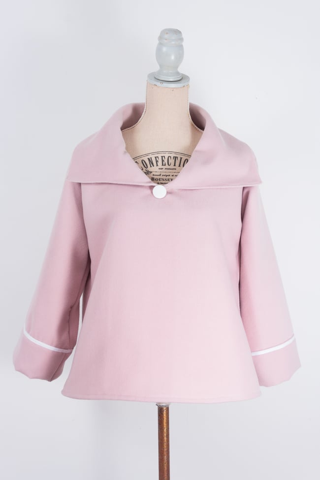 Dans une laine hivernale chaleureuse, rose poudré délicat, effet bonne mine garanti !